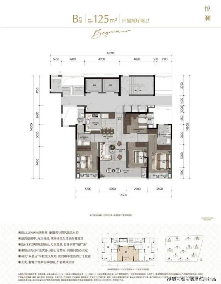 悦海棠用力卷出建面约125方/139方/168方三个户型,均带入户玄关,南向阳台/飘窗,主卧大套房布局,设备平台日常使用率UP,缩减过道空间减少浪费。