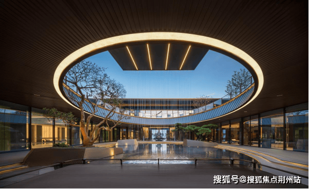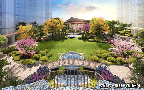 约100米景观主轴步移景异,5棵"东方树"错落高耸,30米纵深立体叠瀑流水潺潺。四栋建筑以阔绰的尺度围合于花园之中,在四季流转里,实现"人—建筑—自然"三者共生的理想人居,雕刻隽永诗意,带给业主度假酒店般的惬意和轻松。
