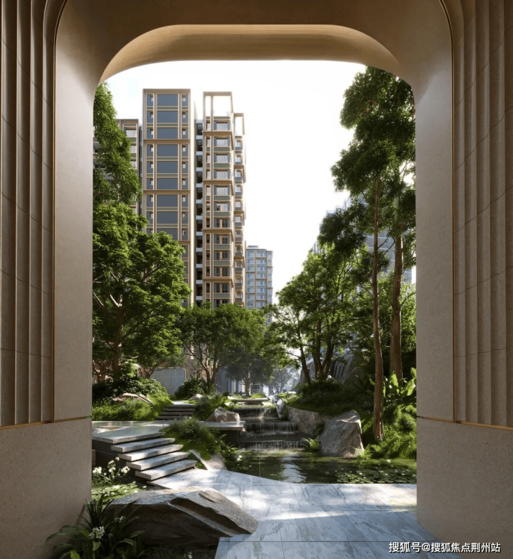 「中建·玖上琅宸」的景观灵感也同样来自豫园。整个中轴线的动线源自豫园“山脉+水脉”的布置手法,景观蜿蜒曲折,遍布下沉庭院、绿植、叠瀑和水景,未来呈现会非常震撼。