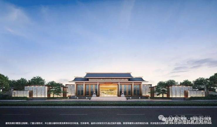 立面形制以借鉴宋皇室《仙山楼阁图》《瑞鹤图》中建筑要素为灵感,并以沧浪亭中明道堂为基础。采用重檐坡屋顶,五间一启形制,庄重不失克制。七阶入门,象征尊贵寓意圆满。门楣大师墨宝,门内非遗漆画姑苏繁华图,再现金阊的富贵之景