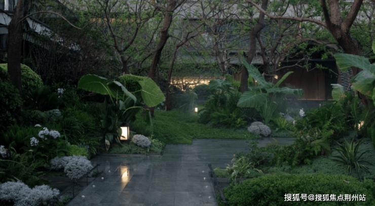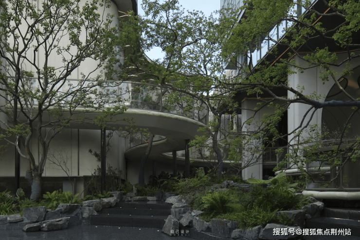 在前场景观体系,苏州招商序又围绕6幕归巢洄游序曲,创新提出将平面景观变成立体景观,通过超600㎡水院与后场归家庭院的嵌套、地面庭院与下沉庭院的垂直呼应、近两百岁名木羽毛枫的点缀,有层次地加强人与人、空间、生活的自然交往,让审美不再是单纯的堆叠奢石,而是进化成阳光下松弛的人。