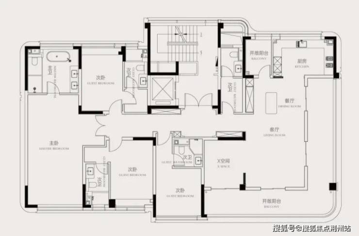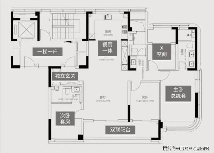 一梯一户一层,双开门入户+主卧双开门,22.4米南向五开间,66㎡LDKG公区+33㎡270°环形阳台(半赠送),四间套房全独卫,下楼直达风雨连廊衔接会所,顶豪配置拉满。