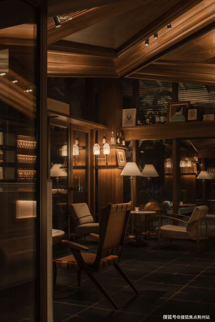 项目的入口,并未直接导向功能核心,而是先落在日茶夜酒这一日常场景之中。白天是茶叙,夜晚转为酒吧,空间以“双时态”的使用方式,成为城市与后续体验之间的自然过渡。