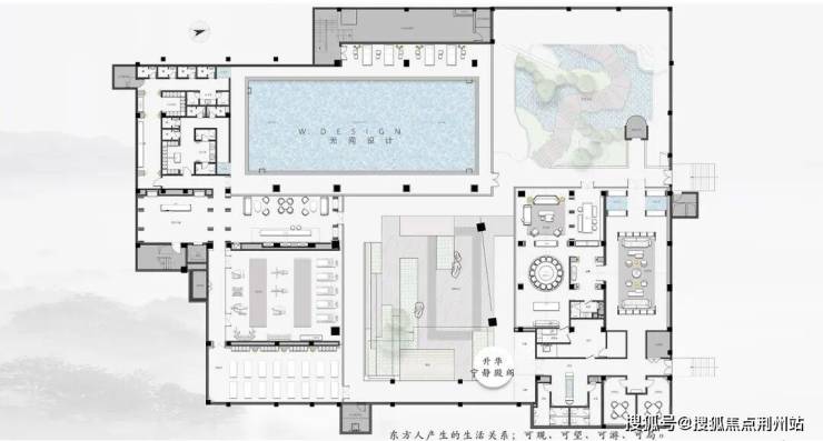 在2000平的地下会所配置条件下释放了景观在设计中更多的留白空间在景观的功能上以精神层面的审美为核心以更松弛的植物布局为手法借助自然山水的形式美升华园林诗情画意的意境美
