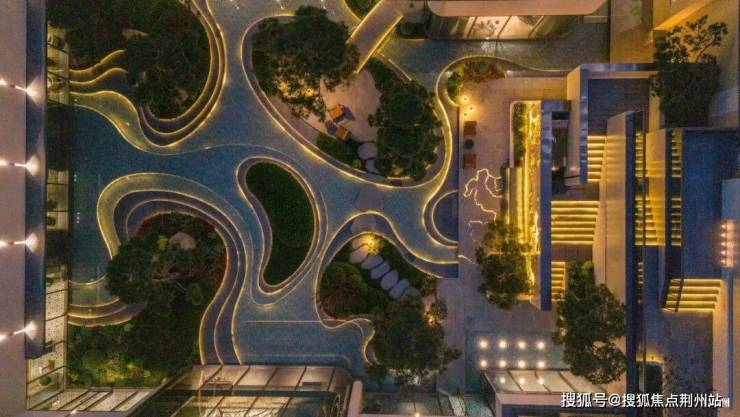 顺着礼仪前厅的台阶缓步向下,九曲云间下沉庭院骤然出现在眼前。