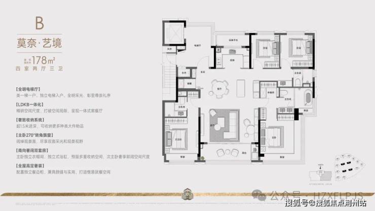 270°全明电梯厅、奢阔大四房南向双套房、中西结合两大餐饮中心、270°无边界艺术主卧、270°观景飘窗奢装艺术主卫、全屋精细化收纳,挚献杭州塔尖奢赏