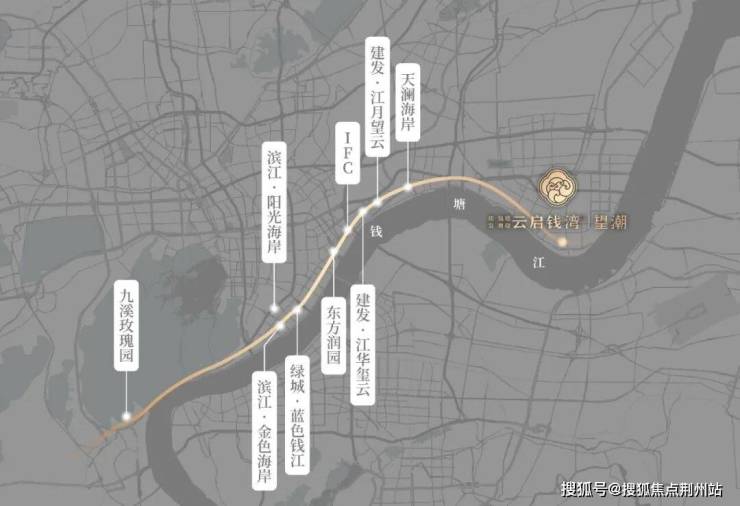 杭州楼市语境里的之江路,是一条曜曜生辉的豪宅之路。西起九溪玫瑰园,一路串联起以阳光海岸、蓝色钱江为代表的南星桥,以东方润园、IFC为代表的江河汇,以万象双子星为代表的钱二豪宅区,并把豪宅基因一路铺设到了风帆路。