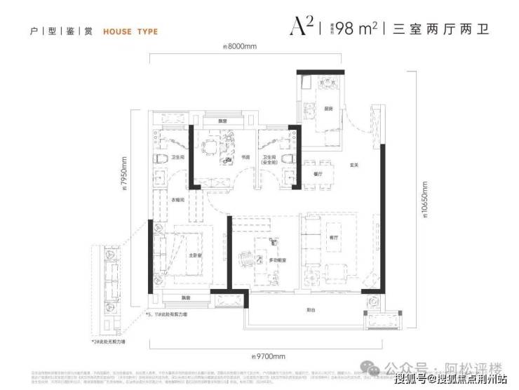 此外,还有一个结构近似的98平中间套,主要是厨房结构有差别。
