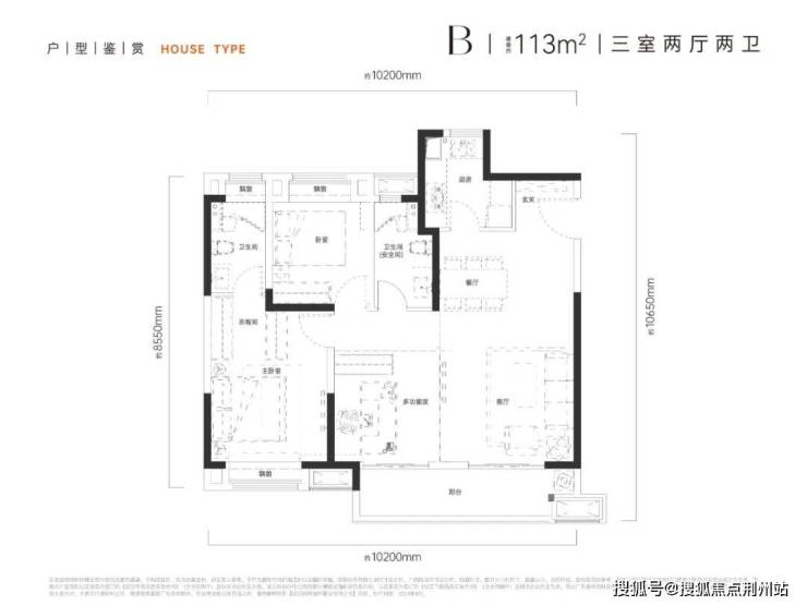 建面约113平B户型边户三房,小面积段边户,在光谷比较少见。3开间朝南+南向南向双联阳台,南北通透效果还不错。三间卧室面积比较均衡。