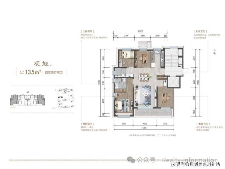 观宸,户型方正,18.5米南向三面宽,大宽厅、双主卧套房、270度转角大飘窗