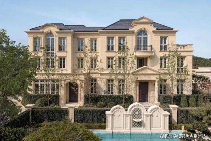 1. 色调纯净,度假美学:立面以浅暖米黄石材为底,点缀金属、玻璃,焕新法式奢华艺术气质。罗马柱与宝瓶柱阵列、隽永雕花,凝练地中海浪漫神韵,恢宏典雅。