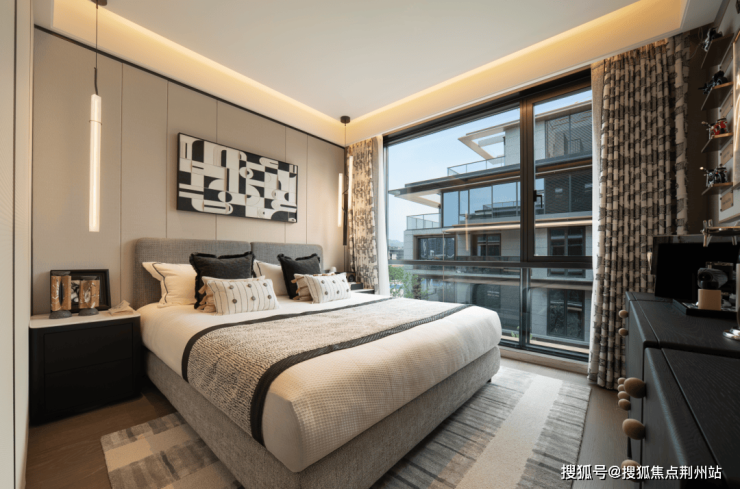 2. 去繁化简,符号典雅:突破传统法式小窗和窄面宽桎梏,采用大面积落地窗,超10米大面宽极致优化采光,消融室内外界限。修长纤细窗框比例,完美契合现代审美对通透与精致的双重追求。