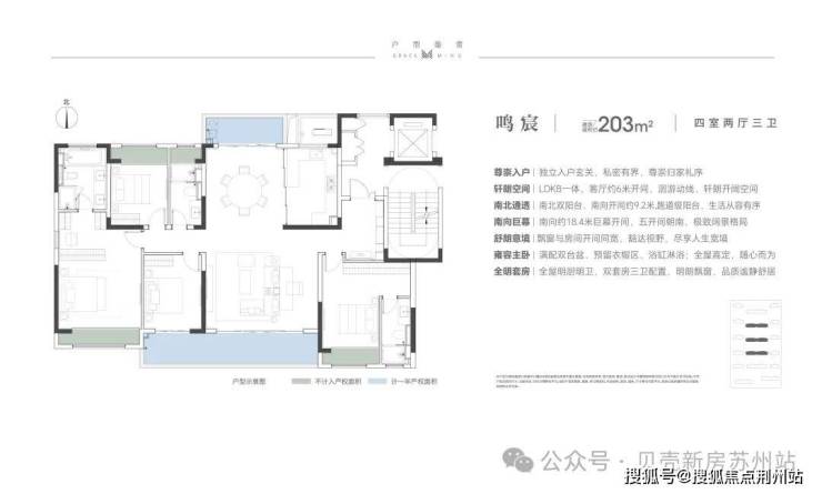 建面约143/170/203㎡户型,四室格局,南北通透;南向大面宽,双联景观阳台,成就郎阔空间尺度,尽揽清风与阳光;独立入户玄关,私密有界;飘窗与房间开间同宽,尽揽阔绰视野;主卧套房设计,独享天地,自成静界。