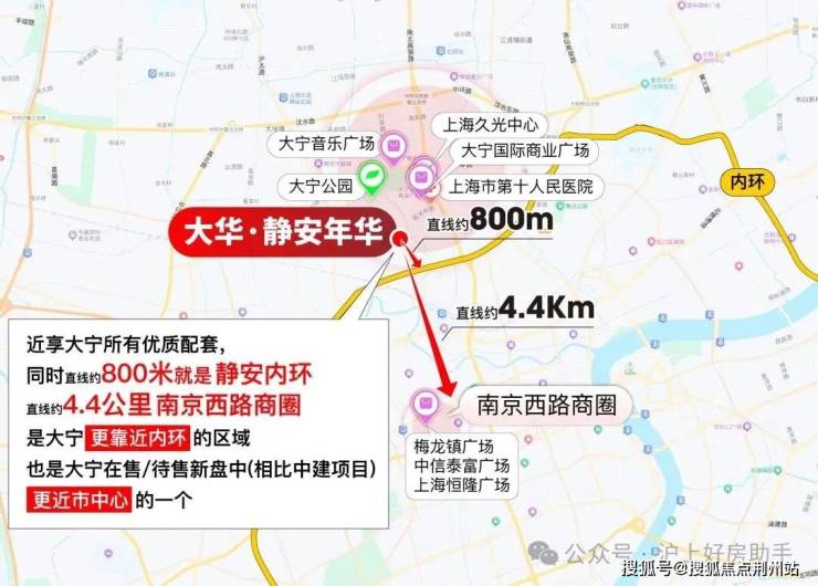【大华·静安年华】项目可谓双王炸区位,直线800米贴脸静安内环,一脚油门就能杀进上海城市动脉,畅达全市核心节点;约4.4公里直插静安寺-南京西路心脏,直接把全上海顶流的繁华,变成你家的「日常生活」。