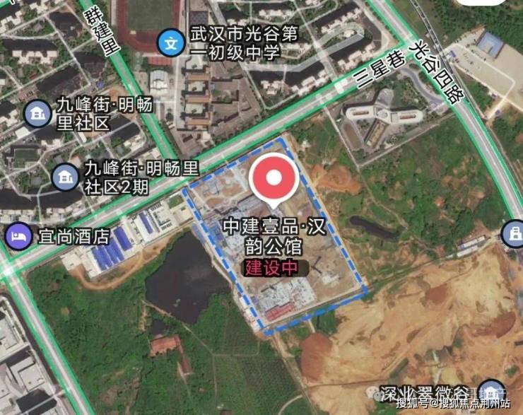 项目四至:北侧是三星巷子、光谷一初、九峰社区等;南侧为待建地块及九峰一路;西边是待建地块,孟新路;东边是武汉市光谷中心幼儿园、光谷四路。