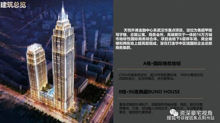 作为外滩滨江最后的稀缺地块,天悦外滩金融中心仅提供96套高端一线配置的行政公馆,以国际化的高度和视野去打造的一座外滩地标和圈层生活交流的平台。