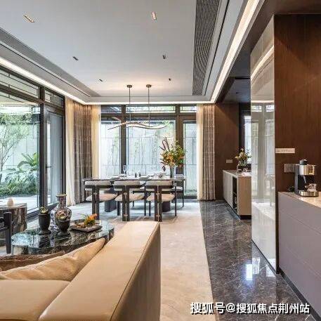 天地合一的江南庭院,衔接约10.7米剧场式阔厅,形成极具包容性的家庭社交中岛,创造宾朋之间亲密无界的分享与交流,或品茗笑谈,亦或闲看云卷云舒……目光所及,皆是亲朋好友的欢声笑语。