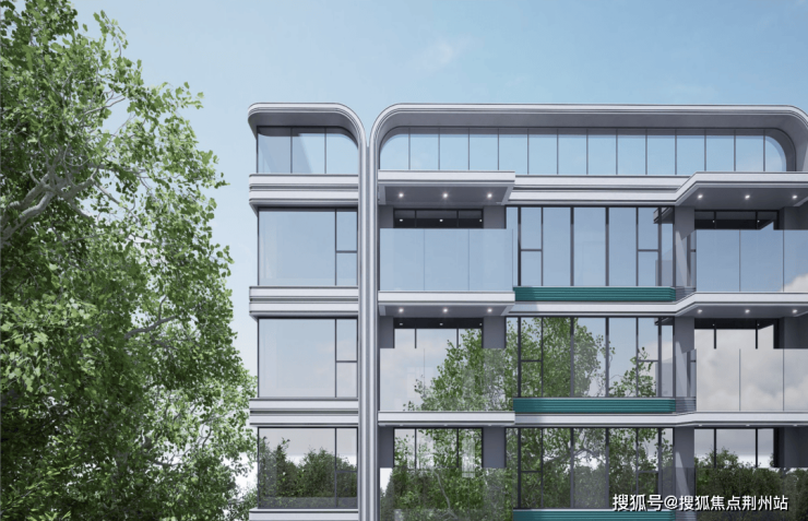 再加上开敞式阳台的玻璃护栏,使得整栋建筑远看像是一个个「水晶体」拼在一起。