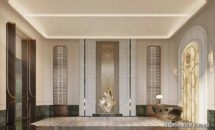步入大门,便是绿城·玉百合的社区归家大堂,这里被塑造成了一座「艺术馆」。