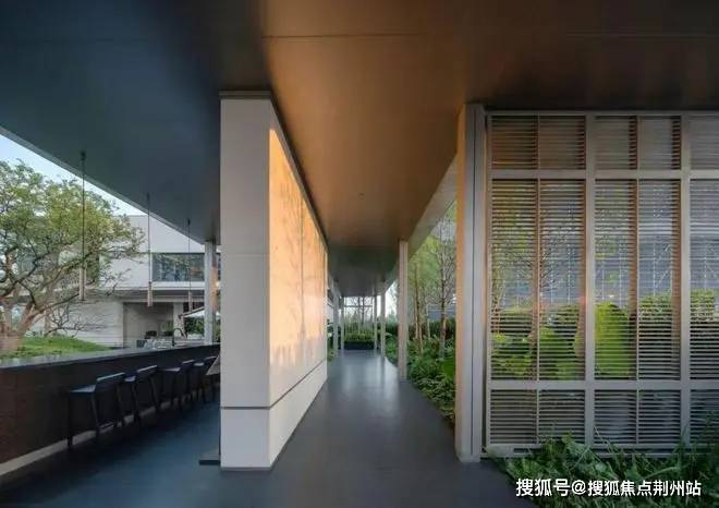 作为花厅拾级而上的又一景点,水吧是观景之地也是休憩之所,落座于精致的吧台,满眼的风景与惬意,天光云影、林木亭廊倒映在水面上,空间变得愈加开阔舒朗。
