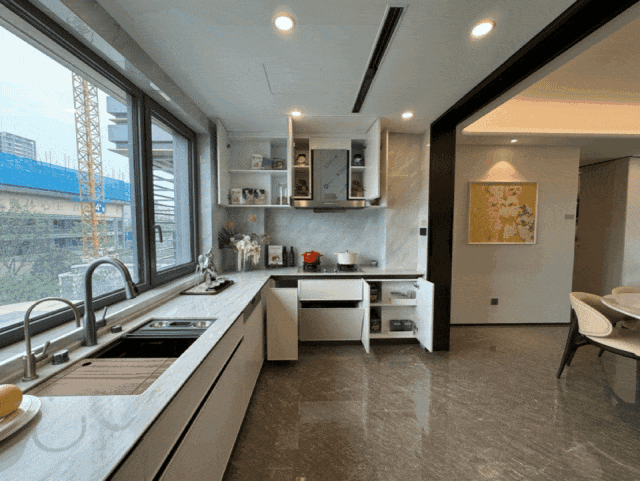 设计了更大尺度的玄关1200库、餐厅的双餐边柜,甚至西厨独立岛台,这些都是交付标准!