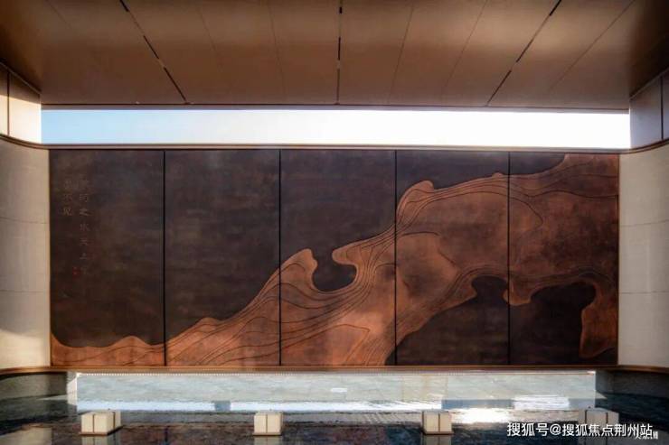 更妙的是,鎏金龙鳞纹艺术景墙的列阵排布,42×68黄金尺寸设定,并非单纯的数值巧合,而是在美学比列与精神寓意上的双重考量。