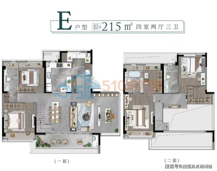 运河壹号项目共建有6栋小高层住宅,户型区间为126㎡-215㎡,共有五种户型。