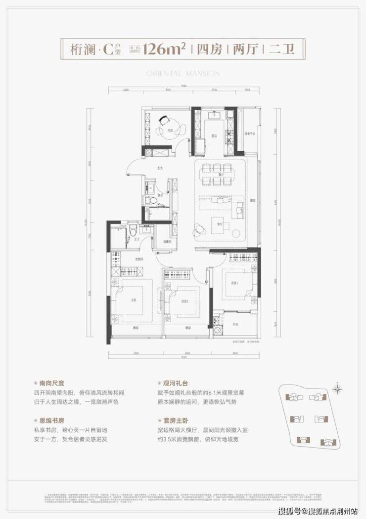 建面约103㎡三房两卫,功能性小三房的代表,总价控制在300万左右的入门优选;建面约120㎡/126㎡四房两卫,其中126㎡户型采用边厅设计;建面约139㎡四房两卫,作为边套户型,拥有270°转角飘窗或超大景观阳台,部分房源可享受河景景观。