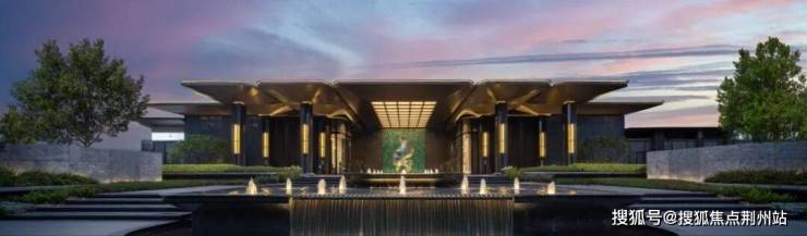 大门处,以八柱五门学府仪式衬托出中央水景,两侧梯级入口取法泮池状元桥之意,寓意独占魁星,抢占鳌头。
