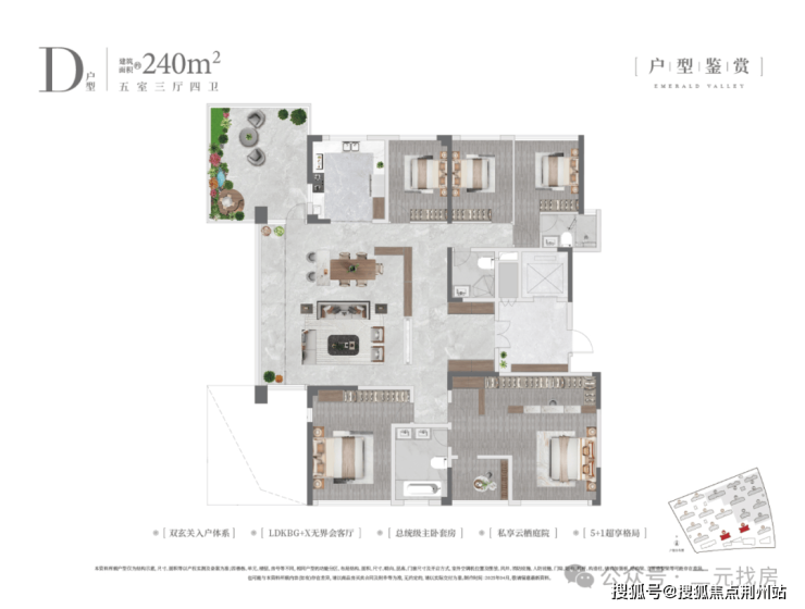 关于项目的得房率,目前的说法是“超110%”,还带“30㎡的空中花园”。