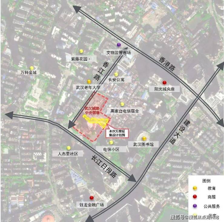 本次方案征集项目是位于武汉城建·中央雲璟项目整体东侧的微型公共空间。武汉城建·中央雲璟项目整体位于江汉区建设大道以北,一环线和二环线之间,长江日报路与香江路的交汇处以东,距离香港路站400米,菱角湖站200米。