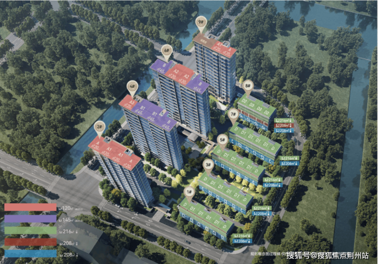 项目规划有4栋14-16F高层及5栋4-5F叠拼,容积率2.0。共计267套商品住宅,主力包括建面约120㎡、145㎡高层户型;建面约208㎡、216㎡叠拼!