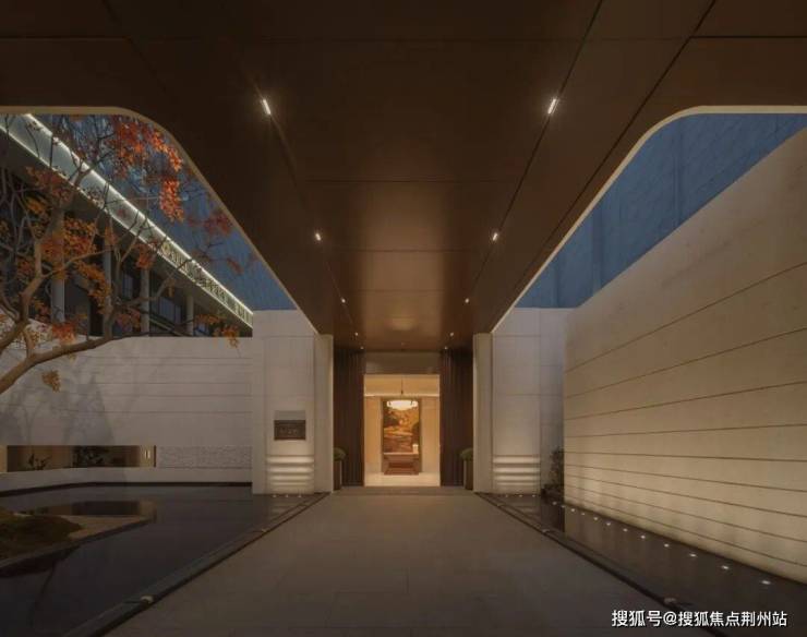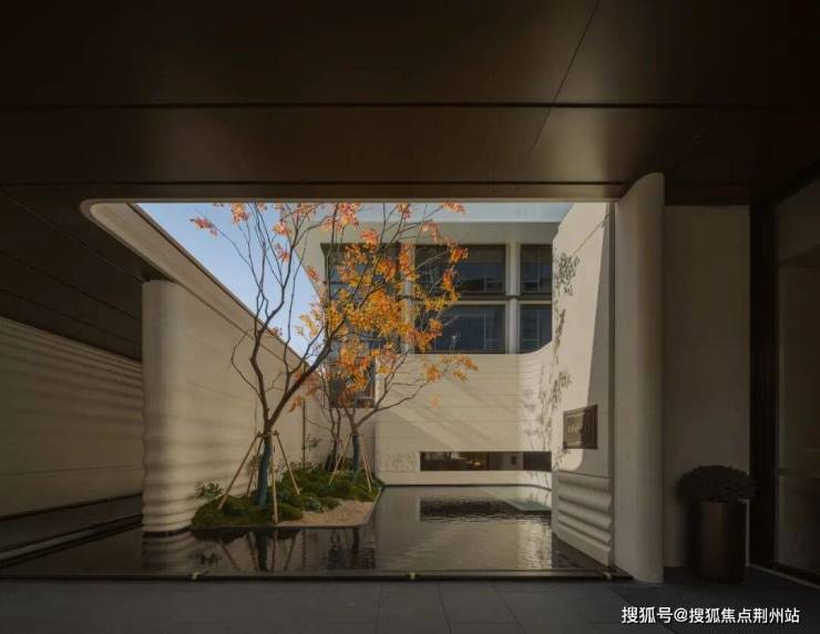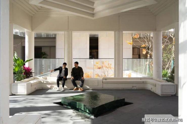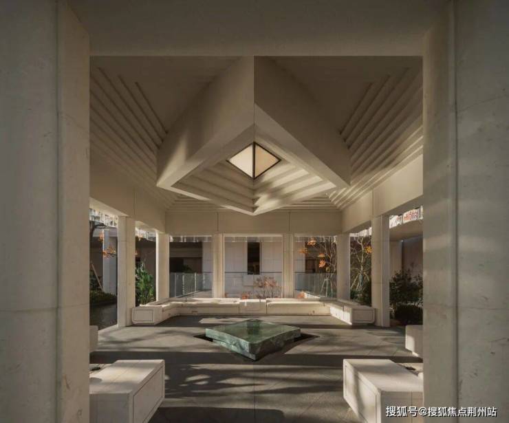 跨过金属移门,进入近1200㎡无界镜面水院,一条汲取建筑大师路易斯·康设计灵感的"神性洄廊"徐徐展开。