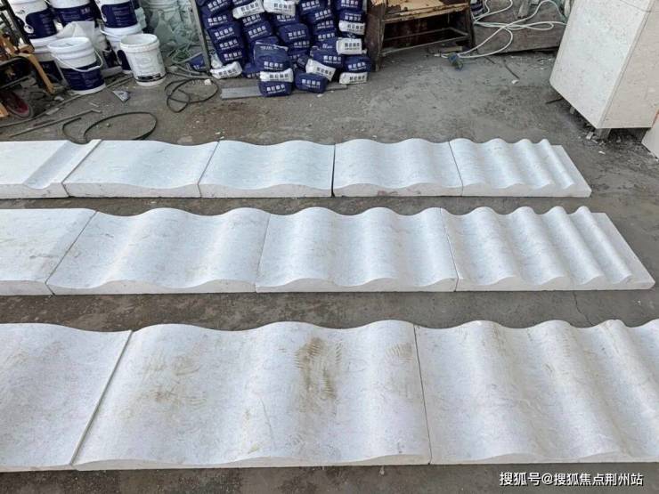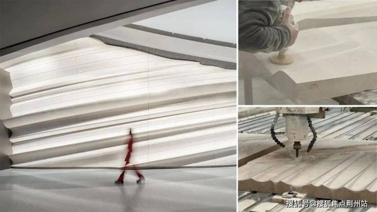△结合黄浦江波浪水纹的意象进行抽象提炼,锻造石材