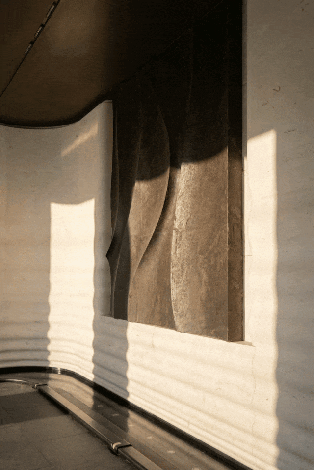 经过数轮推敲,选定的弧度在刚柔之间取得了精准平衡:以15毫米等差数列精密推导的弧线,最终成为立面语言中最具辨识度的精神符号,也是"揉石成缎"理念最生动的注脚。