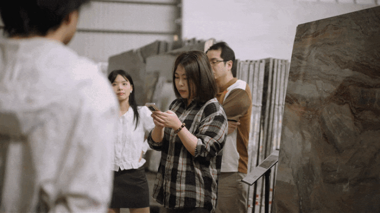 我们与业主团队配合一起制作了多组不同弧度的石材实样,从微妙的1/12弧度到更舒展的1/8弧度,逐一立于真实的建筑体量之上。