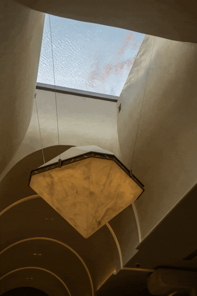 △光廊中的水晶凝韵吊灯,顶部是镜面水院的天窗