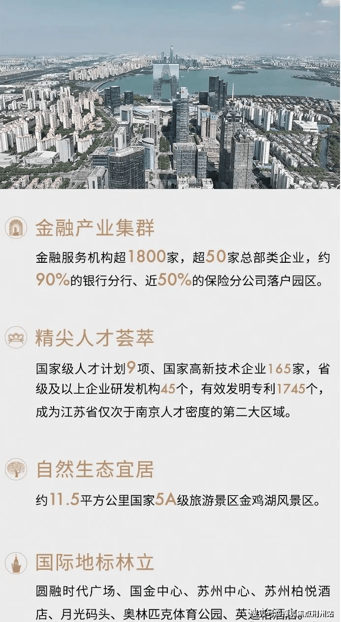 在苏州,金鸡湖CBD作为对话国际的重量级版图,这里勾勒着国际化璀璨的天际,流淌着传奇的血脉,承载着塔尖生活向往。