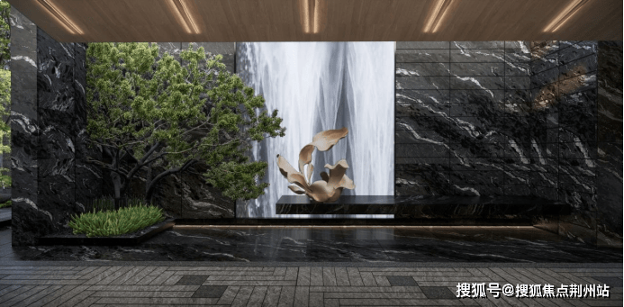 60米横向围界、40.8米长檐屋顶、900块玉石打造的照壁,以“玉琮”为原型的庭院灯具,共同构建主城独有的归家尊崇感。