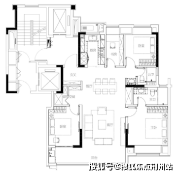 1) 125㎡户型为现阶段市面上少有的3+1房户型,与传统宽厅设计相比,功能性更强,“+1”空间与北侧卧室之间非承重墙设计,可打通扩大次卧空间尺度,增加舒适度,也可作为独立功能空间使用,灵活度较高。