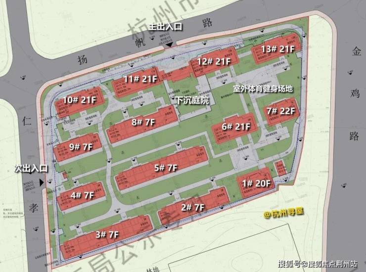 根据目前规划公示,公区规划有下沉式庭院、室外健身场地等,主入口位于小区北侧,次入口位于西侧。