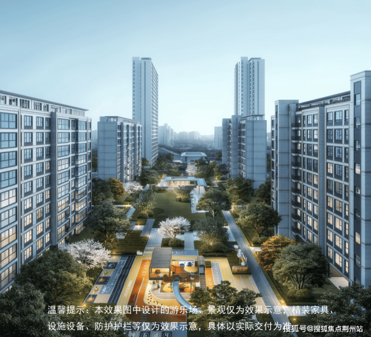 整个社区呈现代轻奢风格,高层和洋房有序排布,从风、光考量,社区呈南偏东15度建筑排布,最大楼间距约43M,采光与清风常伴。