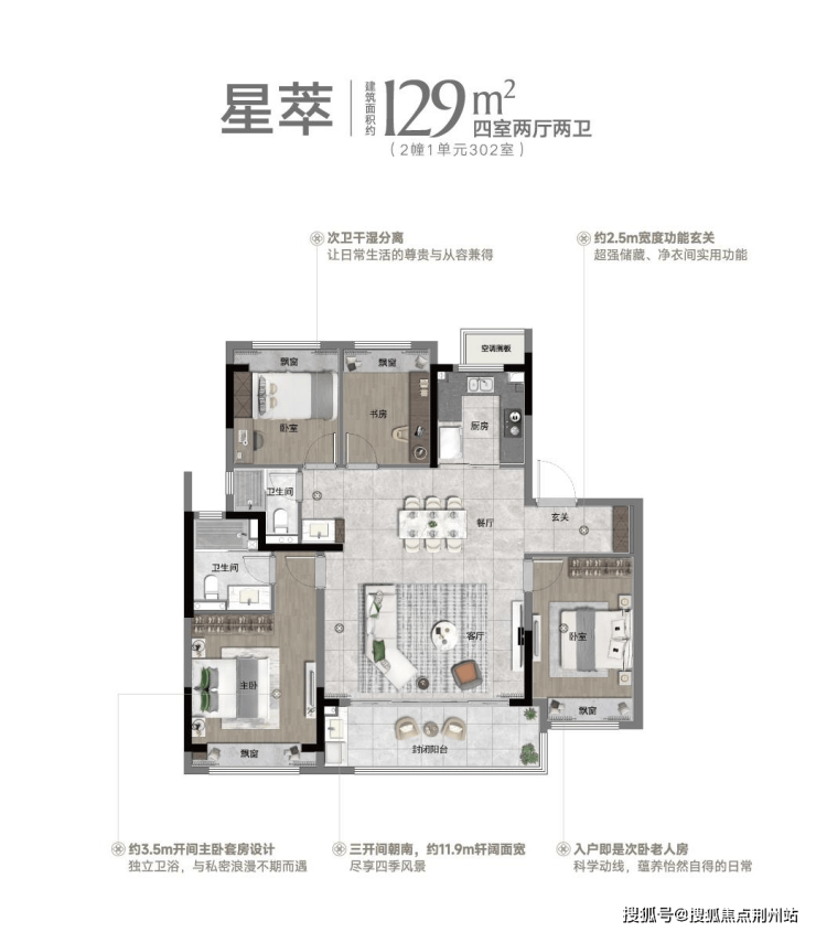 户型配比:洋房129㎡-143㎡,高层112㎡-118㎡