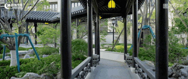 四大主题巷道(清漪、流波、万壑、叠翠)以苏州古典园林为蓝本,在不足3米的宽度内展开精妙的空间构思:弯曲路径打破狭长感,每15米设置的停留平台成为视觉标点 —— 或置竹石小品,或设月洞花窗,让归家脚步随时邂逅景致变化。