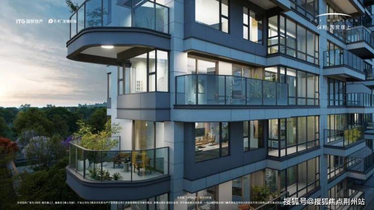 保利·国贸璟上外立面以灰色与米白色金属漆一体板配色为主,浅色的落地玻璃与双层挑高的阳台形成鲜明对比,看起来灵动又轻盈,既符合当代人的审美需求,又彰显出独特的品质感。