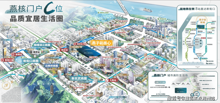 景观上,幕燕滨江风光带、幕府山自然风景区、燕子矶体育公园等,自然风景名胜环绕,江、山、园三重景观资源纳入生活日常,绿色宜居,居住氛围感极强。