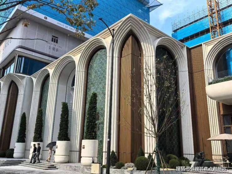 所以,咏印明庐首层将近12米抬高,还是全抬地式的新规产物,叠加不知是意式还是法式的拱门造型,大量金米黄石材,宝格丽绿石材等堆砌。