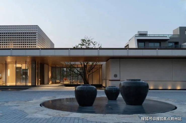 行过归家林径,来到环岛落客区,匠人手工铸造的三尊古法铜缸,平和优雅地立于水面,与拥有独特自然风化纹理的珍稀老石皮相映成趣,勾勒出一幅意境悠远的山水长卷。