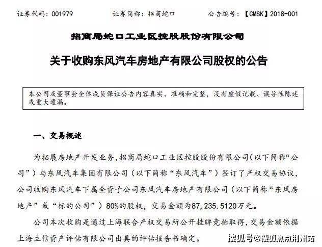 2018年1月,招商蛇口发布公告宣布,其通过上交所公开挂牌竞拍,以8.72亿元收购东风汽车房地产80%的股权,从而获得位于武汉及十堰的9个项目,其中就包含东风电动车厂地块,也就是这两块地。