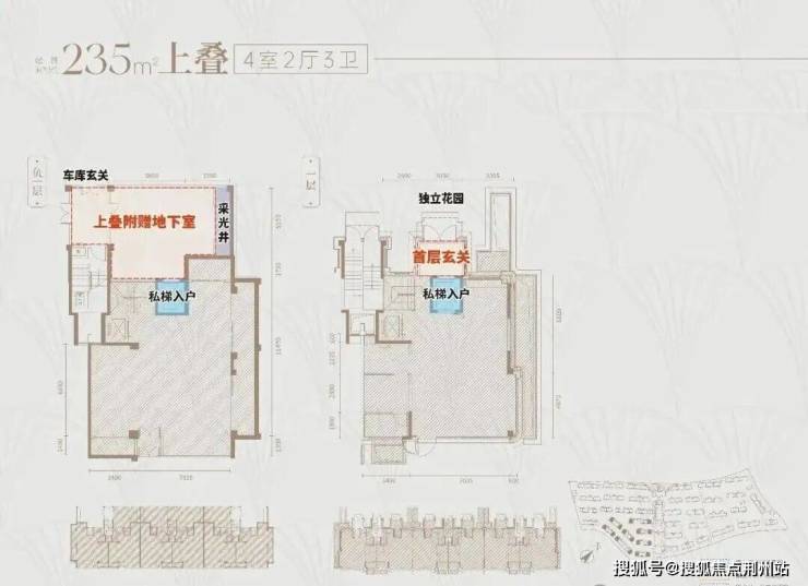 首先,上叠是北向私享入户花园,独门独户,室内私家电梯,尊崇感与私密性都有保障。而且上叠也有地下空间,下单层面积约55㎡,层高达约6.3米,完全做可以做双层使用。